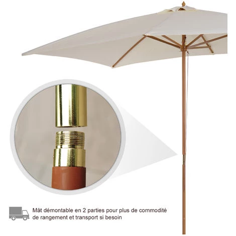 Ce superbe parasol droit rectangulaire 2,95L x 2l x 2,55H m vous offrira une protection optimale contre le soleil. Avec l’arrivĂ©e des beaux jours, ce parasol vous deviendra vite indispensable pour profiter de votre jardin, terrasse ou balcon. CaractĂ©ristiques : – Parasol droit rectangulaire coloris crĂšme – Toile en polyester haute densitĂ© 180 g/mÂČ et mĂąt en bois massif de bambou : exotisme et soliditĂ© au rendez-vous – Grand modĂšle de parasol de 2,95 m de long pour 2 m de large (hauteur 2,55 m) – 6 baleines et contrefiches mĂ©dianes pour plus de stabilitĂ© – MĂąt 2 parties avec raccord dorĂ© pour plus de raffinement – SystĂšme d’ouverture et fermeture Ă corde avec verrouillage de sĂ©curitĂ© 4 niveaux – Vendu sans le support pied SpĂ©cifications : – Couleur : crĂšme – Dimensions totales : 2,95L x 2l x 2,55H m – Toile polyester haute densitĂ© 180 g/mÂČ – MĂąt en bois massif de bambou diamĂštre 38 mm – RĂ©f. : 01-0215