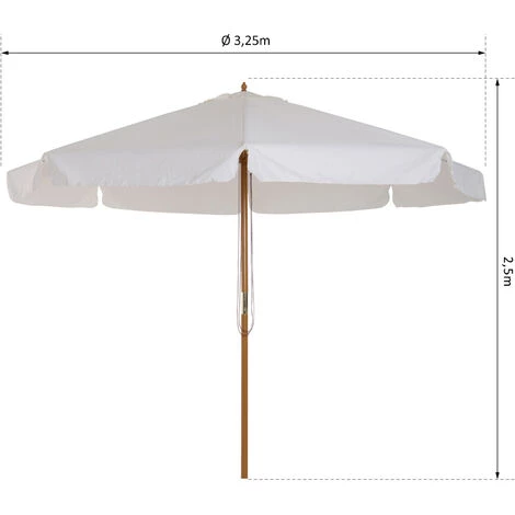 Ce grand modèle de parasol droit dimensions Ø 3,25 x 2,5H m en bois vous offrira une protection optimale contre le soleil. Avec la montée des températures, ce parasol vous permettra de profiter de votre jardin, terrasse ou balcon tout en restant au frais à l’ombre.