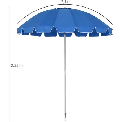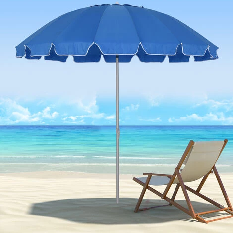 Ce joli parasol inclinable rond Ø 220 cm vous offrira une protection optimale contre le soleil. Avec l’arrivée des beaux jours, ce parasol vous deviendra vite indispensable pour profiter au maximum de votre jardin ou de la plage ! Caractéristiques : – Parasol inclinable rond Ø 220 cm avec lambrequin vagues douces et liseret blanc très élégant – Idéal pour utilisation dans votre jardin, en famille à la plage, à l’occasion d’un picnic, etc… – 16 baleines et entretoises blanches en fibre de verre : stabilité optimale – Mât robuste en aluminium 2 parties pour vous en faciliter son transport (sac de transport inclus !) – Système d’ouverture et fermeture ultra simple et pratique en actionnant le bouton bleu – Protection optimale contre le soleil grâce à sa toile en polyester haute densité – Parasol disposant également d’une cheminée pour éviter les prises au vent et pour limiter la stagnation de l’air sous la toile – Note : pied/base de parasol non inclus Spécifications : – 2 coloris au choix : multicolore ou bleu – Matériaux principaux : aluminium, tissu polyester haute densité – Dim. totales : 240L x 255H cm – Diamètre parasol : 220 cm – Longueur mât supérieur : 148 cm – Longueur mât inférieur : 112 cm – Dim sac de transport : 150L x 19l cm – Accessoire fourni : 1 sac de transport – Livraison effectuée en un colis – Réf. : 84D-090/090BU