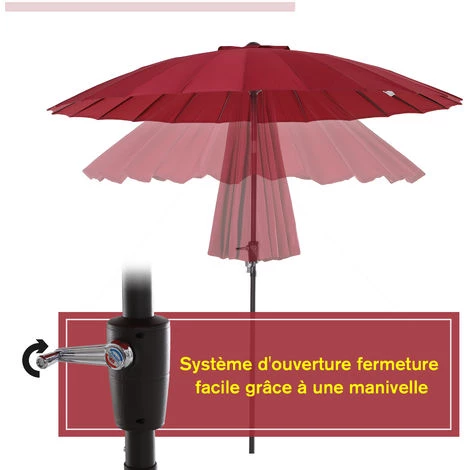 – Parasol rond inclinable de 2,6 m de diamètre et 2,4 m de hauteur