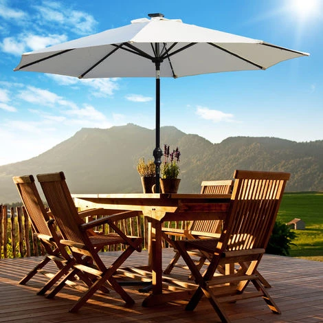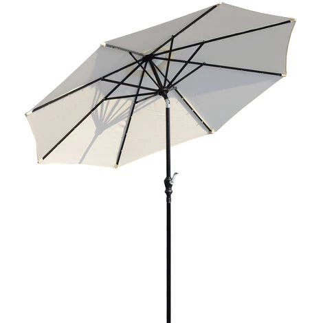 Ce magnifique parasol octogonal inclinable solaire vous offrira une protection optimale contre le soleil mais pas seulement ! Doté d’un éclairage solaire LED, vous pourrez profiter de l’ombre du parasol et de sa belle lumière une fois le soleil tombé ! Caractéristiques : – Grand parasol idéal pour ombrager une grande zone dans votre jardin, patio, terrasse, piscine, etc… – Capteur solaire pour éclairage LED de toile (au nombre de 24, 3 par entretoise) et via un interrupteur – Parasol inclinable pour une protection optimale contre le soleil à n’importe quelle heure de la journée quelle que soit la hauteur du soleil – Toile en polyester haute densité 180 g/m²: protection idéale contre les UV – Système d’ouverture et fermeture à manivelle en aluminium : pratique, rapide à ouvrir fermer à votre guise – Mât en métal démontable en deux parties : transport et rangement pratique – Equipé de 8 entretoises robustes en métal pour un usage pérenne – Note : base/socle de parasol non inclus Spécifications : – Couleurs principales : crème (toile), noir (mât) – Matériaux principaux : métal, polyester haute densité 180 g/m² – Diamètre parasol : 2,7 m – Hauteur parasol : 2,4 m – Diamètre mât : 3,8 cm – Nombre total de LED : 24 – Certification norme CE – Réf. : 84D-018CW