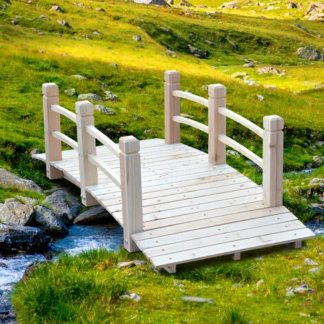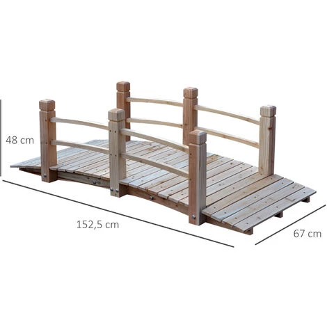 Outsunny Pont De Jardin – Pont De Bassin – Passerelle En Bois Avec Balustrade – Dim. 152,5L X 67l X 48H Cm – Bois De Sapin