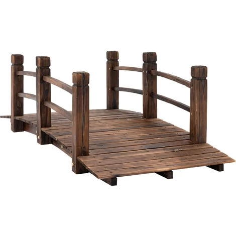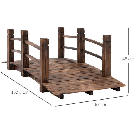 Outsunny Pont De Jardin – Pont De Bassin – Passerelle En Bois – Dim. 152,5L X 67l X 48H Cm – Bois De Sapin Traité Carbonisation