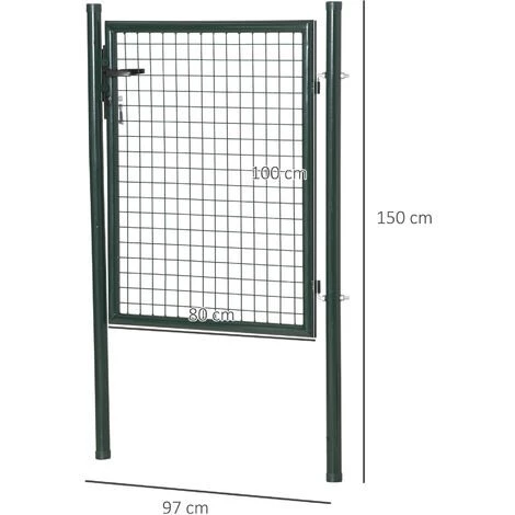 Ce portillon grillagé dim. 97L x 150H cm à sceller est la solution pratique pour fermer un passage. Doté d’une gâche réversible vous offrant un double sens d’ouverture, d’une fermeture par serrure encastrée dans le montant, d’un jeu de 3 clés, il sera très pratique à utiliser au quotidien. Sa fabrication robuste en acier finition époxy vous assurera un usage pérenne. Caractéristiques : – Joli portillon grillagé dim. 97L x 150H cm à sceller coloris vert foncé : solution pratique pour fermer un passage avec élégance – Gâche réversible vous offrant un double sens d’ouverture, fermeture par serrure encastrée dans le montant : très pratique à utiliser au quotidien – Jeu de 3 clés fourni – Fabriqué en acier finition époxy vous assurerant un usage pérenne – Poteaux inclus : stabilité optimale une fois plantés et scellés à 40-45 cm de profondeur – Montage facile, rapide à l’aide du manuel d’assemblage illustré fourni Spécifications : – Couleur : vert foncé – Matériaux principaux : acier, PVC – Dim. porte : 97L x 150H cm – Dim. panneau de porte : 80L x 100H cm – Ø poteaux : 5 cm – Livraison effectuée en 2 colis – Réf. : B70-056