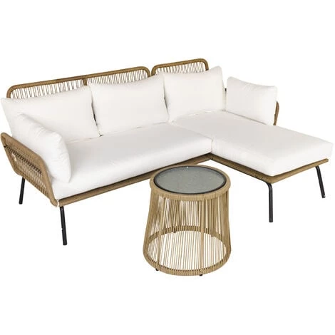 Aimez-vous vivre la nature ? Souhaitez-vous un salon de jardin style colonial en réponse à votre goût pour l’élégance et la nature ? Alors optez pour ce magnifique ensemble salon de jardin d’angle 4 personnes en résine tressée afin de sublimer votre extérieur. De quoi confortablement installer et épater votre famille et vos amis ! Caractéristiques : – Ensemble salon de jardin complet doté d’un canapé d’angle avec méridienne (intégralité coussins inclus) et d’une table basse (avec plateau verre trempé) – Style colonial cosy en résine tressée et résine filaire mêlant originalité et élégance – Structure robuste en métal époxy anticorrosion, revêtement en PE, housse coussins polyester déhoussables : matériaux de qualité résistant aux rayons UV, à l’humidité et ne nécessitant pas d’entretien particulier – Assise profonde et dossier ergonomique haut : excellent maintien du dos – Intégralité des coussins inclus garnissage mousse haute densité : confort optimal d’utilisation – Espace méridienne idéal pour s’allonger et reposer ces jambes – Plateau table basse en verre trempé – Idéal pour une installation aussi bien extérieure (jardin, terrasse, balcon) qu’intérieure (véranda) – Montage facile, rapide à l’aide du manuel d’assemblage illustré fourni Spécifications : – Couleurs principales : beige (résine tressée), crème (coussins) – Matériaux principaux : métal époxy anticorrosion, résine tressée, verre trempé – Dim. canapé : 125L x 77P x 82H cm – Dim. méridienne : 137L x 68P x 82H cm – Dim. table basse : Ø 49 x 47 H cm – Charge max. recommandée : 220 Kg (canapé), 160 Kg (méridienne), 30 Kg (table basse) – Livraison effectuée en 2 colis – Réf : 860-134
