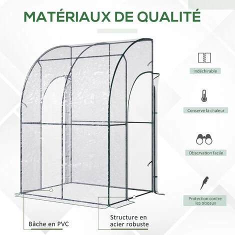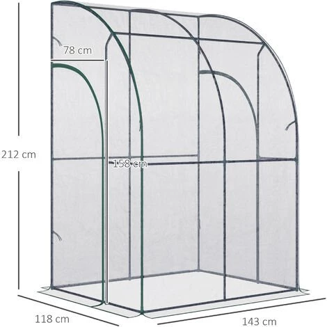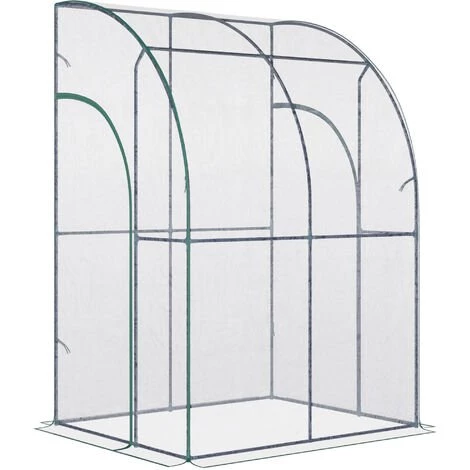 Outsunny Serre De Jardin Adossée Serre Adossée Dim. 1,43L X 1,18l X 2,12H M 2 Portes Zippées Enroulables Acier PVC Transparent – Transparent