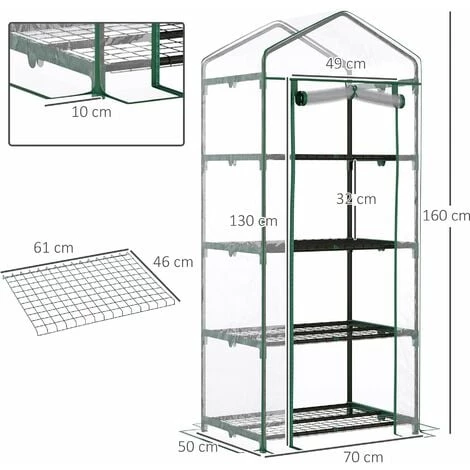 Cette serre de jardin vous aidera Ă protĂ©ger vos plantes contre la pluie, le vent, la grĂŞle, le soleil, les dĂ©gâts causĂ©s par les oiseaux, insectes, etc… Ses matĂ©riaux de haute qualitĂ© assureront une protection optimale pour vos plantes. CaractĂ©ristiques : – Châssis tubulaire en acier thermolaquĂ© haute qualitĂ© – Bâche en PVC transparent haute densitĂ© robuste et durable (rallongĂ©e de 10 cm env. pour un meilleur maintien au sol) – Grande porte dĂ©roulante pour laisser l’air circuler, ouverture et fermeture par zip – Protège contre la pluie, le vent, la grĂŞle, le soleil, les dĂ©gâts causĂ©s par les oiseaux, insectes, etc. – 4 Ă©tagères au total – Manuel d’instructions illustrĂ©es fourni : montage facile et rapide SpĂ©cifications : – Couleurs : vert, transparent – Dim. : 0,7 x 0,5 x 1,60 m (L x l x H ) – MatĂ©riaux principaux : acier thermolaquĂ©, PVC – Hauteur disponible entre chaque Ă©tage : 32 cm – Charge max. recommandĂ©e pour chaque Ă©tagère : 15 Kg – RĂ©f. : 845-228V03