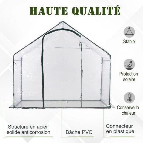 Cette superbe serre de jardin protègera efficacement vos plantes afin d’en tirer le meilleur rendement possible. EquipĂ©e d’une porte dĂ©roulante zippĂ©e avec cordons d’attache, d’une structure an acier thermo-laquĂ©, et d’une bâche rallongĂ©e, vous pourrez sereinement protĂ©ger vos plantes.