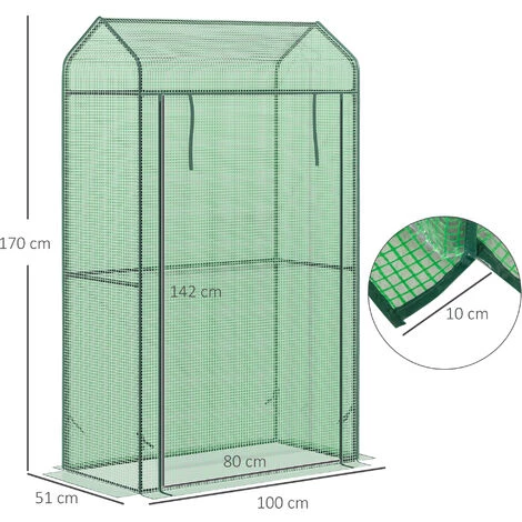 Outsunny Serre De Jardin Serre à Tomates Anti-UV Dim. 100L X 51l X 170H Cm Porte Zipée Déroulante Métal Thermolaqué PE Vert – Vert
