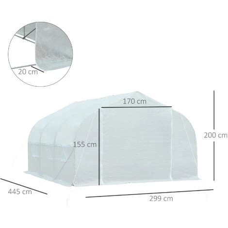 – Grande serre tunnel de jardin dim. 4,45L x 2,99l x 2H m soit 13,31 m² de surface sol exploitable – Serre idéale pour cultiver des plantations type fruits et légumes, fleurs, etc…