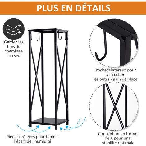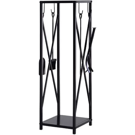 Outsunny Serviteur De Cheminée Colonne – Porte Bûches – Range Bûches Multi Accessoires Dim. 34L X 34l X 111H Cm Métal Noir