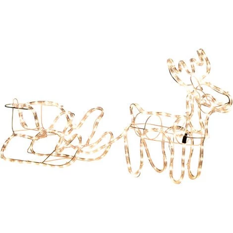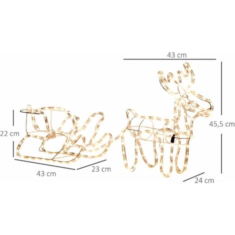 Sublimez votre extérieur grâce à cette jolie silhouette renne et traîneau lumineux de Noël ! Ce duo renne et traîneau sera parfait pour illuminer votre jardin durant les fêtes. Conçu pour une utilisation en extérieur (norme IP44), ce duo résistera parfaitement à la météo hivernale ! Illuminé par 192 LED blanc chaud, il diffusera une lueur magique de Noël qu’importe l’endroit où il se trouvera.