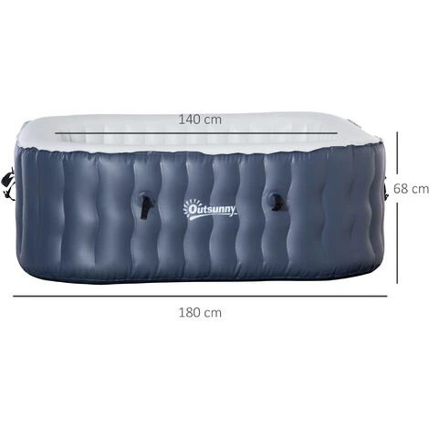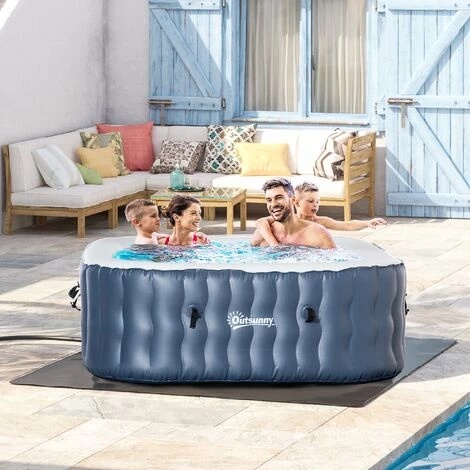 Outsunny Spa Gonflable Carré 4-6 Places – 108 Buses D’air Hydro-massantes – Fonctions Chauffage Filtration – Liner PVC Bleu Blanc