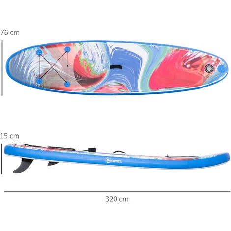 Vous recherchez une planche de stand up paddle gonflable adaptée à tous les niveaux ? Cette planche vous permettra de vous initier ou pratiquer le paddle boarding quel que soit votre niveau. Caractéristiques : – Stand up paddle gonflable au design profilé élégant coloris principaux bleu rouge – Paddle dim. 320L x 76l x 15H cm adapté aux néophytes comme aux confirmés – Revêtement plateforme antidérapant pour se tenir debout facilement dans l’eau douce et salée – Paddle hybride aussi bien adapté pour la promenade loisirs que pour la course de compétition – Pointe de la planche est élevée pour passer plus facilement dans l’eau – Aileron robuste au centre afin de vous faciliter son orientation – Gonflage rapide : planche livrée avec une pompe haute performance pour gonflage/dégonflage rapide (dessus de la planche doté d’une soupape à haute pression) – À l’avant de la planche, vous trouverez un cordon élastique pratique pour attacher votre sac – Nombreux acessoires fournis : pagaie aluminium réglable pour trouver la hauteur qui vous convient, kit de réparation, sac à dos de transport – Matériaux de qualité supérieure pour vous offrir la meilleure expérience de paddle Spécifications : – Couleurs principales : bleu, rouge – Matériaux principaux : PVC, EVA – Dim. totales : 320L x 76l x 15H cm – Dim. pliées : 84L x 32,5l cm (épaisseur : 28 cm) – Hauteur pagaie : 160-210 cm – Résistance à la température : -30°C – 70°C – Charge max. recommandée : 150 Kg – Livraison effectuée en un colis – Réf. : A33-027V01