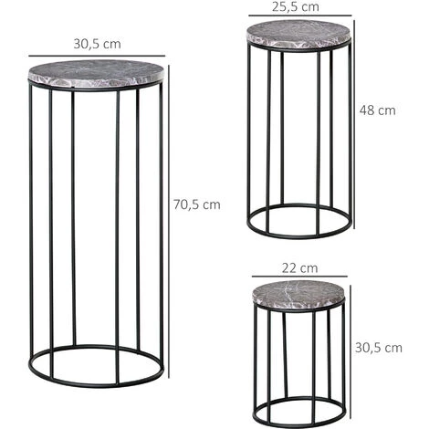 Outsunny Support Pots De Fleurs 3 Pièces – Lot De 3 étagères à Fleurs – Portes Plantes Empilables – Métal époxy Plateaux Aspect Marbre Gris