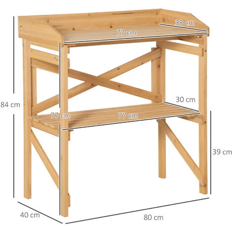 Cette jolie table de rempotage jardinage en bois de sapin pré-huilé vous permettra de profiter d’un confortable espace de plantation pour vos fleurs, légumes, herbes aromatiques, semis, etc… Grâce à son double niveau (étagère + plan de travail), jardiner et rempoter deviendra que plus facile, pratique et agréable ! Caractéristiques : – Table idéale pour le rempotage de vos fleurs, herbes aromatiques, légumes ou préparation de vos semis – Double niveau de rangement : plateau principal/plan de travail avec rebords et étagère – Etagère à lattes laissant plus facilement s’écouler l’eau si vous souhaitez y déposer des pots de fleurs – Fabrication en bois de sapin robuste pré-huilé : durabilité optimisée – Piètement avec barres obliques de support et croisillon arrière donnent plus de caractère à la table et renforce sa rigidité, stabilité – Installation simple et rapide (manuel d’assemblage illustré fourni) – Convient à une installation en extérieur ou en intérieur Spécifications : – Couleur : bois de sapin pré-huilé – Matériau : bois de sapin pré-huilé – Dim. totales : 80L x 40l x 84H cm – Dim. plateau : 77L x 38l x 76H cm – Dim. étagère : 77L x 30l x 39H cm – Charge max. recommandée : 30 Kg (plateau), 10 Kg (étagère) – Livraison effectuée en un colis – Réf. : 845-669