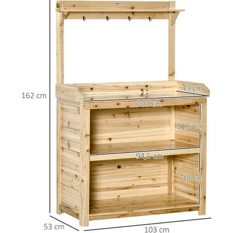 Cette jolie table de rempotage jardinage en bois de sapin pré-huilé vous permettra de profiter d’un confortable espace de plantation pour vos fleurs, légumes, herbes aromatiques, semis, etc… Grâce à son triple niveau (2 étagères + plan de travail) et ses crochets, jardiner et rempoter deviendra que plus facile, pratique et agréable !
