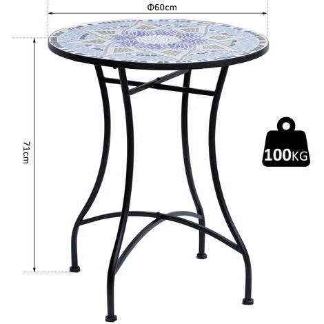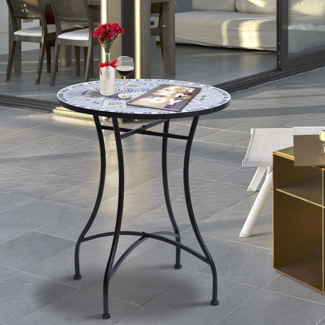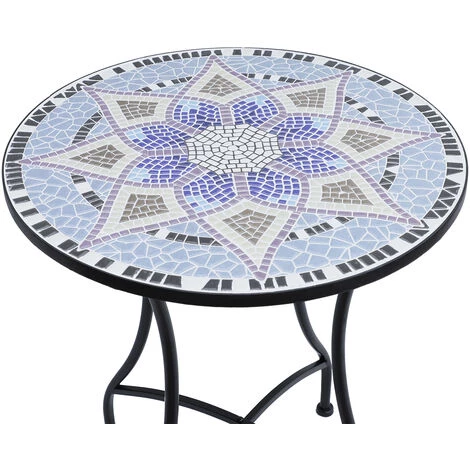 Apportez une touche d’élégance à votre intérieur ou extérieur avec cette superbe table bistro ronde style fer forgé avec plateau mosaïque en céramique motif fleur.