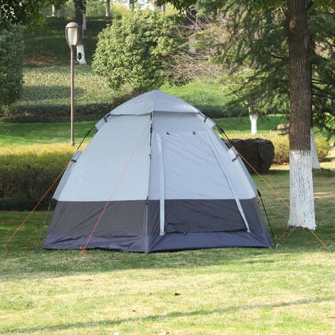 Cette superbe tente de camping 3-4 personnes montage instantanée pop-up vous offrira en un rien de temps un bel espace pour camper confortablement ! Caractéristiques : – Tente de camping idéale pour 3 jusqu’à 4 personnes max. – installation, rangement facile et rapide grâce à son mécanisme de structure automatique pop up – 2 grandes portes pour faciliter entrée & sortie et optimiser la ventilation – Protection optimale : dôme supérieure de protection + possibilité d’utiliser une porte comme auvent pour vous abriter de la pluie ou du soleil – Toile en polyester 210T avec revêtement PU imperméabilisé (haut niveau d’étanchéité couche extérieure : 3000 mm+) – Structure en fibre de verre robuste pour une utilisation pérenne – 1 poche de rangement, idéal pour y mettre quelques accessoires et affaires – Nombreux accessoires fournis : 12 piquets d’ancrage au sol, 6 cordages de serrage, 2 barres support (fonction auvent), crochet intérieur pour suspendre une lumière, sac de transport inclus – Tente de camping 3 saisons : idéale pour le printemps, l’été et l’automne – Convient pour le camping, trekking, etc… – Recommandation : veuillez ne pas utiliser cette tente par temps hivernal extrême (neige, gel) Spécifications : – 2 coloris au choix : gris, noir ou vert, gris – Matériaux principaux : oxford 210D, polyester 210T, fibre de verre, acier – Dim. totales : 2,6L x 2,6l x 1,5H m – Dim. pliées : Ø 16 x 87L cm – Dim. portes : 95l x 107H cm – Dim. poche de rangement : 23L x 17H cm – Ø châssis tubulaire : 1,6 cm – Ø tubulaire fibre de verre : 9,5 mm – Livraison effectuée en un colis – Réf. : A20-128/128GN