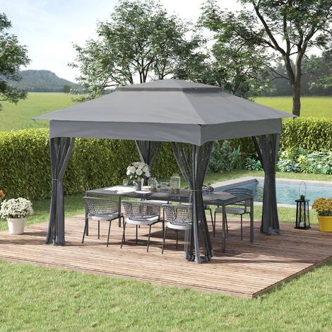 Cette magnifique tonnelle pop-up pliante pourrait vous offrir de l’ombre ou vous le souhaitez ! C’est un barnum de jardin design et pratique idĂ©al pour toute la famille ! EquipĂ© d’un toit double et de 4 moustiquaires, vous et vos invitĂ©s seront parfaitement protĂ©gĂ©s contre le soleil et contre les insectes tout en profitant d’un air respirable et agrĂ©able. En plus, l’installation de cette tonnelle de 10,56 m² de surface sol est facile et rapide. Laissez-vous tenter ! CaractĂ©ristiques : – Tonnelle pliante Ă double toit avec fonction de ventilation en cas de forte chaleur – IdĂ©ale pour organiser une fĂŞte, un pique-nique, un anniversaire, etc… – Protège efficacement contre les rayons UV du soleil – 4 moustiquaires amovibles avec zip et cordons d’attache pour une parfaite protection contre les moustiques et autres insectes nuisibles – Toile en polyester impermĂ©abilisĂ© haute densitĂ© 110 g/m² – Toile principale perforĂ©e Ă 4 niveaux pour Ă©viter toute formation de poche d’eau – 8 entretoises support toit pour un maximum de stabilitĂ© et rigiditĂ© – Armature en mĂ©tal Ă©poxy anticorrosion pour un usage pĂ©renne – 4 cordons de serrage, 8 piquets d’ancrage au sol et 1 sac de transport fourni SpĂ©cifications : – 2 coloris au choix : cafĂ©, chocolat ou gris – MatĂ©riaux principaux : acier, polyester – Dim. totales : 3,25L x 3,25l x 2,95H m – Hauteur avant-toit : 1,8 m – Dim. pliĂ©es : 24L x 24l x 129H cm – RĂ©f. : 840-166/166MX