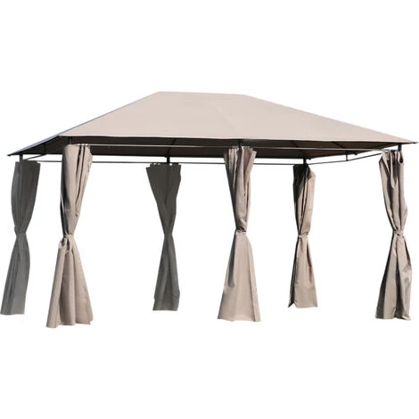 Outsunny Tonnelle Barnum Pavillon De Jardin Style Colonial Double Toit Toiles Latérales Amovibles 4L X 3l X 2,64H M Taupe