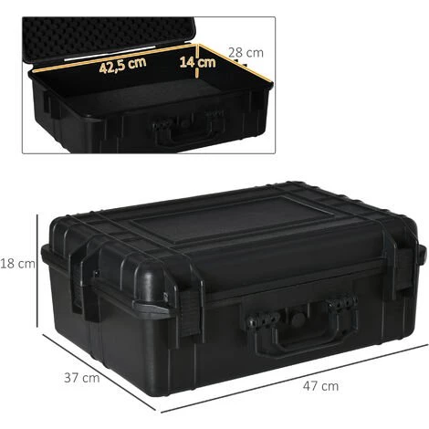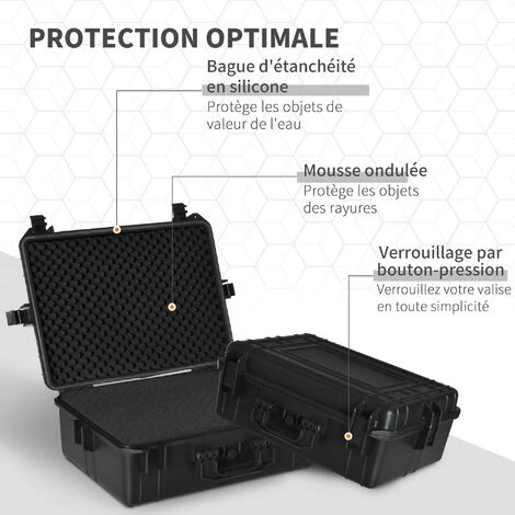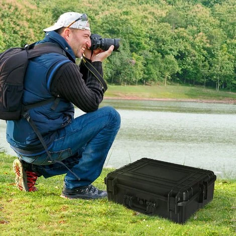 Cette mallette d’extérieur antichoc pour appareil photo avec mousse prédécoupée est idéale pour transporter des objets sensibles tels que des objectifs, des appareils photo, des instruments de mesure, etc. Caractéristiques : – Valise antichoc mallette d’extérieur pour appareil photo idéale pour transporter des objets sensibles tels que des objectifs, des appareils photo, des instruments de mesure, etc. – Mallette compacte équipée d’une poignée, facilité de transport – Protection optimale : mousse prédécoupée quadrillée, mousse alvéolée dans le couvercle, valve d’équilibrage de pression avec anneau d’étanchéité silicone, œillets pour cadenas – Étanche à l’eau et à la poussière (IP67) – Mallette rigide robuste de qualité en polypropylène résistant aux chocs – Aucun montage nécessaire, utilisation immédiate possible ! Spécifications : – Couleur : noir – Matériaux principaux : PP, silicone, mousse (100% polyuréthane) – Dim. totales : 47L x 37l x 18H cm – Dim. internes : 42,5L x 28l x 14H cm – Charge max. recommandée : 20 Kg – Livraison effectuée en un colis – Réf. : 845-753V02